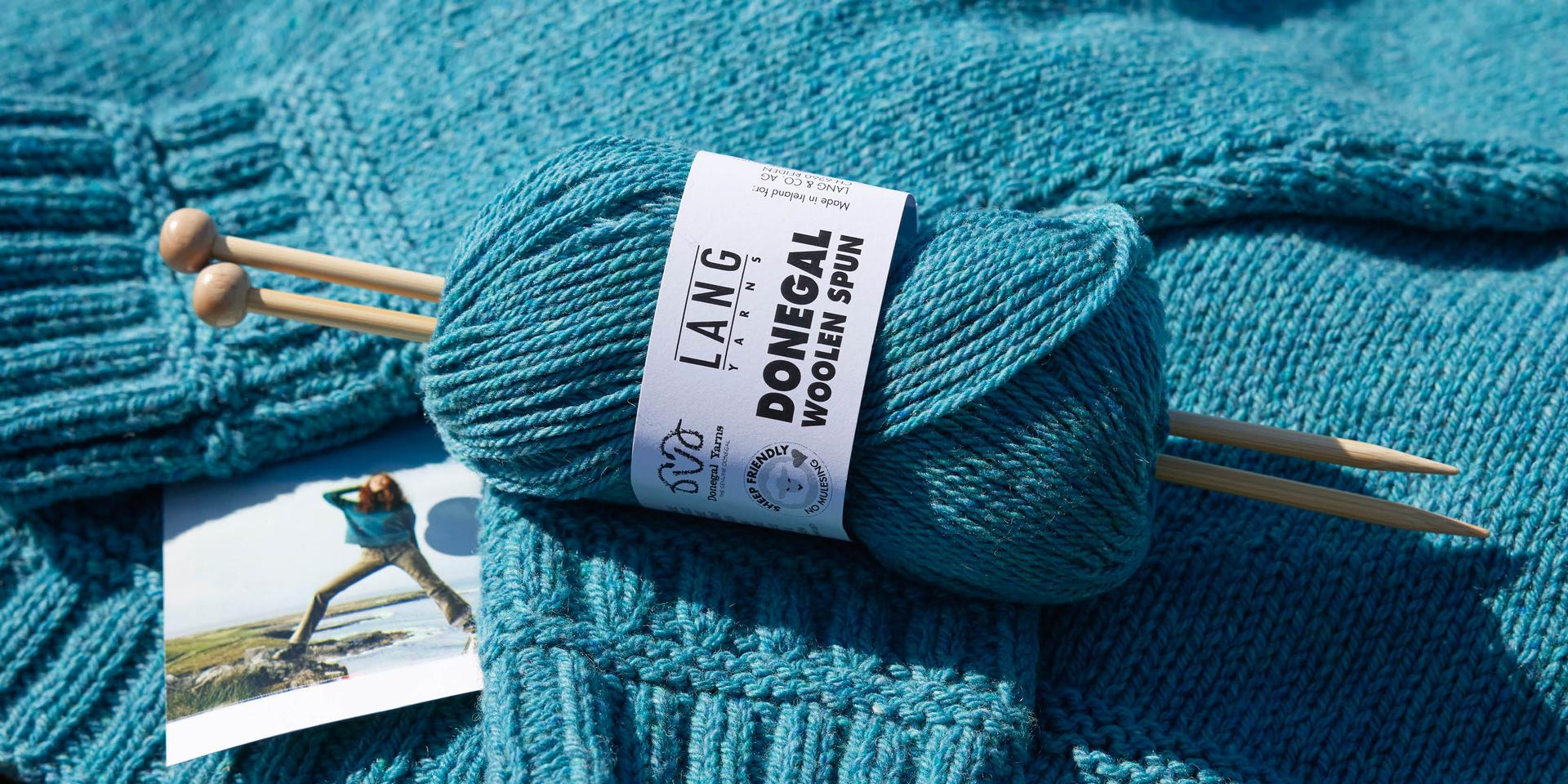 DONEGAL TWEED+ und DONEGAL WOOLEN SPUN weisen die gleiche Maschenprobe auf – alle Modelle lassen sich daher wahlweise mit dem einen oder dem anderen Garn stricken.